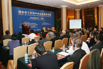9月12日,国务院国资委主任李荣融在北京向美国宾夕法尼亚大学沃顿商学院第33届EMBA师生发表了以“国资委工作和中央企业改革发展”为主题的演讲,并回答了师生们关于中央企业海内外上市、履行社会责任、业绩考核、国资委和中央企业今后的发展战略等方面的问题。他的精彩演讲和答问赢得全场师生阵阵掌声。