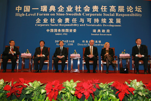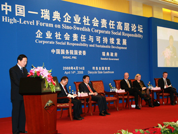 4月14日下午,国资委主任李荣融、副主任黄淑和及瑞典首相赖因费尔特出席了由国务院国资委与瑞典政府在钓鱼台国宾馆共同举办的中国—瑞典企业社会责任高层论坛。李荣融发表了重要讲话,黄淑和主持了论坛上半场的活动。