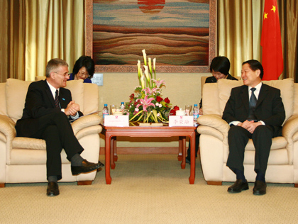 3月24日下午,国务院国资委主任李荣融在国资委会见了德国巴斯夫集团董事长兼德国经济亚太委员会主席贺斌杰一行。贺斌杰介绍了巴斯夫集团与中国石化的合作情况,李荣融对中国石化与巴斯夫集团的合作表示支持,双方还就世界经济发展等问题进行了交流。
