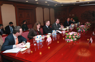 11月26日,国务院国资委主任李荣融在委内会见了欧盟欧洲委员会贸易委员曼德尔森一行。