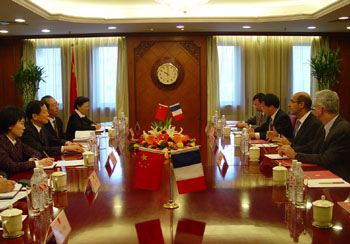 12月16日上午,国务院国资委主任、党委书记李荣融在国资委会见了法国阿尔斯通公司董事长柏珂龙先生一行四人。