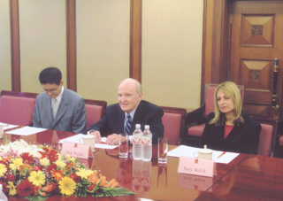 6月21日上午,国资委主任李荣融在国资委会见了通用电气公司前董事长兼首席执行官杰克·韦尔奇先生,双方就现代企业经营管理和制度建设广泛地交换了意见。国资委副主任邵宁、中海油总经理傅成玉、宝钢集团董事长谢企华、中远集团总裁魏家福、华润集团总经理宁高宁参加了会见。在交流中,双方就企业数据管理、跨行业企业集团的整合与重组、企业经营预算管理、科学的选人用人机制等问题展开了富有成果的讨论。杰克·韦尔奇先生表示中国国有企业领导人在会谈中所表现出来的热情和国际视野给他留下了十分深刻的印象。李荣融对通用电气以及杰克·韦尔奇先生多年来给予中国国有企业在培训等方面的帮助表示感谢。