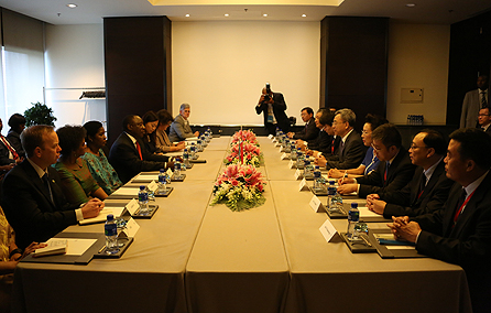 7月15日,国资委主任张毅在北京会见了来华进行正式访问的南非共和国副总统拉马福萨阁下一行,并一同出席了由国资委与南非副总统办公室、南非国企部及驻华使馆共同举办的“中国—南非国有企业研讨会”。国资委副主任黄丹华、副秘书长彭华岗、委内有关厅局及相关中央企业代表,南非驻华大使姆西芒、国企部长布朗,以及外交、教育、财政、贸工、能源等部门和大型国企负责人出席了上述活动。