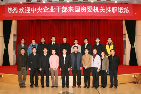 12月11日上午,国资委人事局组织召开了2009-2010年第五批中央企业干部到国资委机关挂职锻炼欢迎会。来自中石油等中央企业的10名同志从今天起分别到规划局、分配局、监事会局、群工局、人事局、纪委监察局开始为期一年的挂职锻炼。