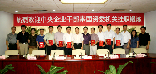 7月25日上午,按照国务院国资委党委关于中央企业干部与国资委机关干部双向交流挂职锻炼的总体步骤和要求,国资委人事局召开第四批中央企业干部到国资委机关挂职锻炼欢迎会。中国海运(集团)总公司总裁事务部副部长顾泉林等8名同志,于7月26日上午分别到国资委外事局、企业改组局、企业领导人员管理一局、直属机关党委正式上岗开始为期一年的挂职锻炼。