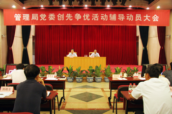 同志们,开展创先争优活动,是我们进一步解放思想推进科学发展的重要机遇。让我们一起共同努力,以超前的工作思路,以创新的工作理念,以扎实的工作措施,努力开创管理局系统“组织创先进、党员争优秀、单位上水平、职工提素质”的生动局面!