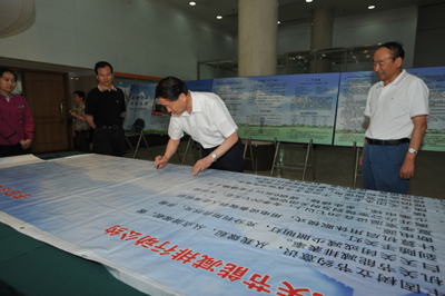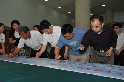 签名活动现场气氛活跃,机关干部职工踊跃签名