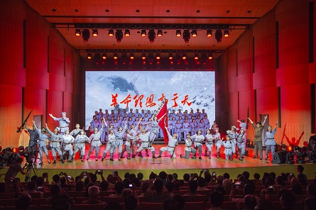 文艺演出分为旭日东升、火红年代、世纪春潮、光耀中华四个篇章,分别展现建党到建国、建国到改革开放、十一届三中全会以来特别是以习近平同志为核心的党中央全面从严治党、深化改革所取得的伟大成就。我委选送的情景表演《过雪山草地》由近百名离退休老同志用混声合唱和舞蹈等艺术形式,再现了红军将士“革命理想高于天”的伟大精神。演出气势恢宏、表演细致,现场观众的反响热烈,得到中央国家机关工委领导、其他部委有关领导高度赞扬。