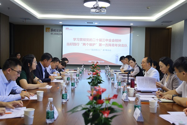 9月9日,国务院国资委直属机关团委以“学习贯彻党的二十届三中全会精神 当好践行‘两个维护’第一方阵青年突击队”为主题开展“国资青言汇”第7期活动,组织机关青年干部走进华润双鹤(北京)工业园,通过“现场参观+专题辅导+座谈交流”的方式,深入开展青年理论学习。