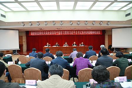 为深入学习贯彻习近平总书记系列讲话精神,按照中央的要求和委党委的统一部署,国资委直属机关从3月31日起分4期举办学习贯彻习近平总书记系列讲话精神轮训班。机关、监事会局处级党员干部(含挂职),各离退休干部局局处级干部,直属事业单位和机关服务中心局级干部,共约1100人参加轮训。3月31日至4月4日举办了第一期班,机关厅局、监事会、直属单位共230名局处级领导干部参加。
