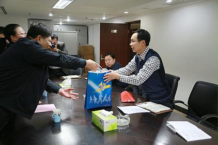 1月8日,国资委直属机关党委常务副书记曾坚、工会主席吕秋菊带着委领导和中央国家机关工会联合会的关心,代表机关奉献爱心的全体职工看望女儿身患白血病的收益局困难职工梁凯同志,并将中央国家机关工会联合会的27000元慰问金和委机关全体职工捐赠的368130元善款送到梁凯手中。
