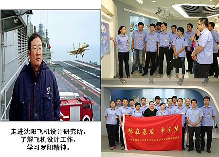 在沈阳飞机设计研究所,调研团了解了飞机设计工作的基本流程和我国战斗机的演变历程,参观了飞机抗电磁干扰能力测试、飞机隐身性能测试和飞机仿真驾驶等几个亚洲领先的重点实验室,并聆听罗阳同志的同事们讲述他生前工作中的点点滴滴,深切感受到这位航空英模矢志报国、铁肩担当而又低调谦虚的朴实作风。