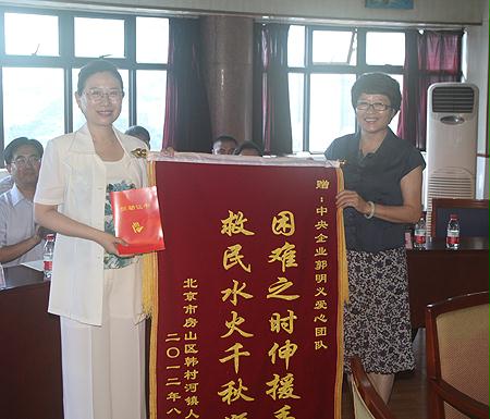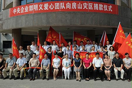 8月6日,国务院国资委文明办组织,由26家中央企业郭明义爱心团队和国资委机关郭明义爱心团队志愿者代表组成的慰问团抵达房山区韩村河镇,向灾区群众送去志愿者个人捐款现金1164201.53元,表达中央企业广大干部职工和委机关干部对受灾群众的一片深情。