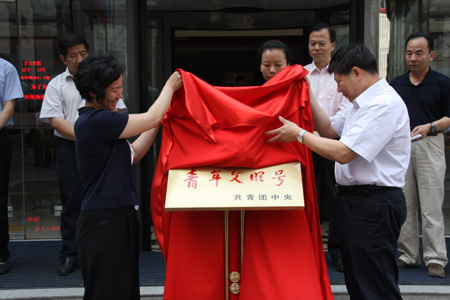 6月9日下午16时,国资委直属机关团委在北京和平里宾馆举行和平里宾馆全国“青年文明号”揭牌仪式。中央国家机关团工委书记吴海英同志、国资委直属机关党委常务副书记曾坚同志、国资委直属机关党委副书记周胜建同志、国资委管理局副局长、党委副书记、纪委书记张文宏同志、国资委石化机关服务中心党委书记李彪同志、国资委石化机关服务中心副局长欧阳涵同志,以及国资委直属机关各单位团干部、部分青年同志代表共50余人出席揭牌仪式,吴海英书记和曾坚书记为“青年文明号”揭牌。