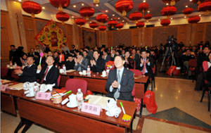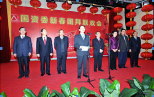 2月9日下午,国资委西便门办公区多功能厅红灯高挂,喜气洋洋,一片欢乐祥和的景象。国资委机关春节团拜会在这里隆重举行。国资委主任、党委书记李荣融同志致新春贺辞,并率委领导班子全体成员向国资委机关干部职工拜年。在京的委领导、部分监事会主席,机关全体干部职工、直属单位及直管协会有关负责同志参加了团拜会。