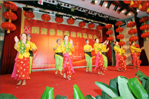 团拜会上还举行了文艺联欢。文艺联欢由2009年新录公务员表演的舞蹈《西班牙斗牛风情》和机关各厅局自撰的春联展示拉开序幕,在《举杯吧,朋友》的欢快乐曲中结束。整个文艺联欢以机关厅局结合本单位业务工作撰写的春联展示为主线,从不同的侧面回顾过去一年在党中央国务院的坚强领导下,国资委与中央企业同舟共济应对国际金融危机,保持国民经济平稳较快发展取得的可喜成绩;讴歌在建设中国特色社会主义伟大进程中,国资委直属机关干部职工和中央企业所表现出来的时代精神;抒发直属机关广大干部职工坚持解放思想、坚持改革开放,为推进国有经济发展、建设社会主义和谐社会和促进本单位全面建设贡献智慧和力量的诚挚感情;表达了国资委机关广大干部职工,坚定理想信念,为推进国有资产监督管理体制改革和中央企业改革发展努力奋斗的坚强决心和坚定信心。整个演出高潮迭起,异彩纷呈,令人目不暇接。文艺演出中还进行了抽奖活动。