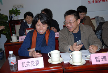11月19日下午,国资委举行了直属机关学习十七大精神短信答题活动启动仪式。国资委副主任王瑞祥同志及国资委直属机关党委、信息中心、中国移动通信集团北京有限公司等单位的领导,机关各厅局和各离退休干部局的代表70余人参加了启动仪式。