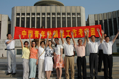应朝鲜金日成社会主义青年同盟的邀请,受共青团中央的委托,国资委机关青年一行12人组建“中国青年工作考察团”,于2006年6月9日至17日,赴朝鲜进行了为期9天的考察。