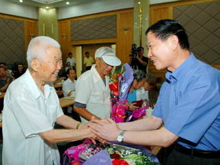 会上,李荣融和王瑞祥为到会的20多位参加过抗日战争的老战士献花并颁发荣誉奖章。老战士们在会上作了主旨发言,与会干部职工、青年团员、民主党派及归侨侨眷代表在会上畅谈了自身的感想,表达了不忘历史、振兴国家的强烈愿望。