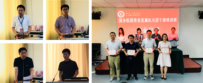 培训期间还举办了青年沙龙,财务监管局刘彤、改革局王晓方、考核分配局曹昆鹏、研究局牛聪等四名同志结合本职工作,分别从中央企业瘦身健体提质增效和“处僵治困”、集团重组整合、业绩考核与薪酬分配、“全国五四红旗团支部”获奖启示等方面分享了工作体会与思考,并与学员们现场互动、广泛交流。