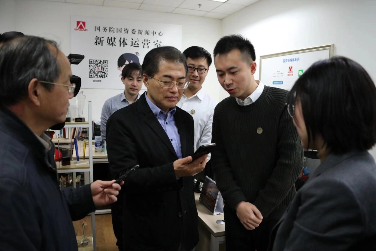翁杰明深入考察了国资委网站、国资小新、国资报告杂志等媒介平台和中央企业全流程舆情管理系统,详细了解了重点报道、影像制作和品牌传播等情况,并与新闻中心干部职工进行了亲切交谈。