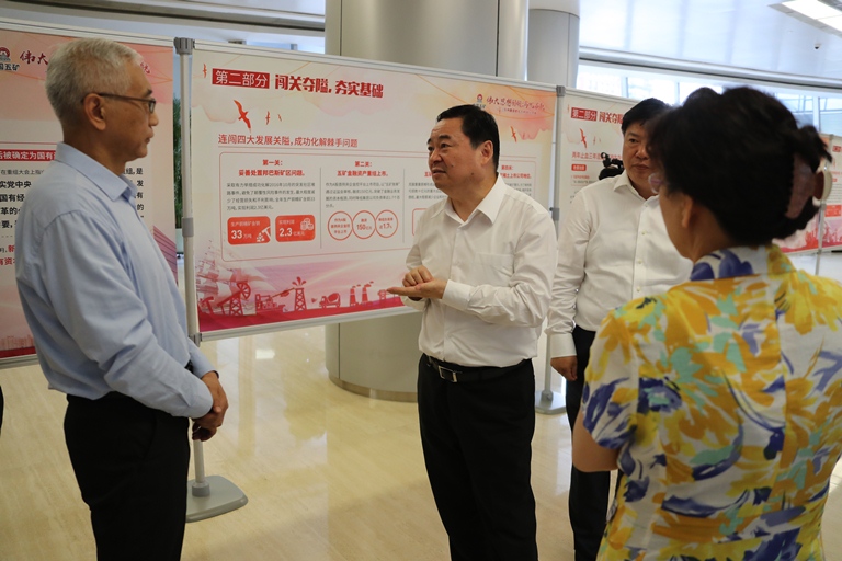 郝鹏深入中国五矿有色院中国矿业信息化协同创新中心,与有关院士、专家探讨矿产资源领域科技创新问题,同青年科研人员亲切交流;到中国五矿总部参观了企业“伟大思想引领满帆启航”——中国五矿、中冶集团重组三周年成就展,对企业以高质量党建引领高质量发展,“互补式重组”实现三年两翻番,推进产业链持续健康发展的显著成绩给予充分肯定。郝鹏强调,要进一步解放思想,深化改革,做强做优主业实业,瞄准铜、锌、镍、铬、稀土等国家战略性资源,超前谋划布局,打造完整产业链,在维护我国资源安全上发挥应有作用。要培养、用好优秀人才,尽快攻克一批制约行业发展的关键核心技术。