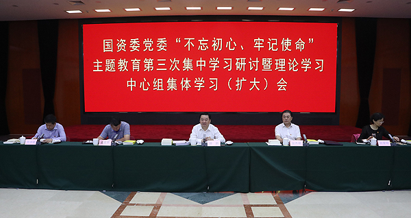 8月19日至20日,国资委党委开展“不忘初心、牢记使命”主题教育第三次集中学习研讨暨理论学习中心组集体学习。国资委党委书记、主任郝鹏主持学习研讨,强调要深入学习贯彻习近平新时代中国特色社会主义思想,贯彻落实习近平总书记关于抓思想认识到位、抓检视问题到位、抓整改落实到位、抓组织领导到位的重要指示要求,高标准高质量推动主题教育走深走实,促进主题教育与国资国企发展改革监管和党的建设工作深度融合,凝聚起干事创业、履职尽责的强大动力,以优异成绩迎接新中国成立70周年。国资委党委委员,副部长级干部参加学习研讨。