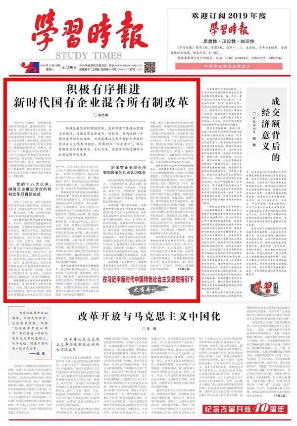 积极发展混合所有制经济,是新形势下坚持公有制主体地位,增强国有经济活力、控制力、影响力的一个有效途径和必然选择。必须坚持以习近平新时代中国特色社会主义思想为指引,牢固树立“四个意识”,深入贯彻落实新发展理念,更大力度、更深层次推进国有企业混合所有制改革。