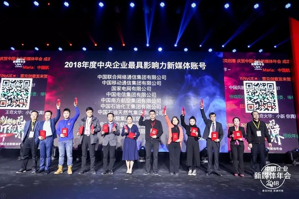 2018年度中央企业最具影响力新媒体账号代表上台领奖