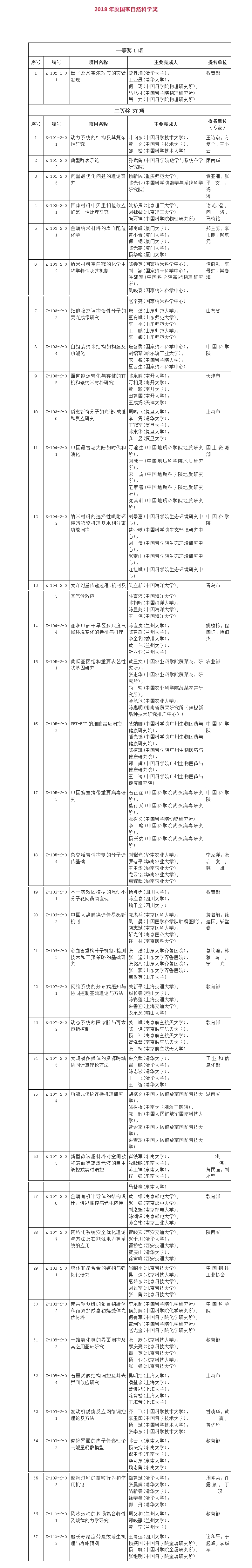 2018年度国家科学技术奖 完整获奖名单