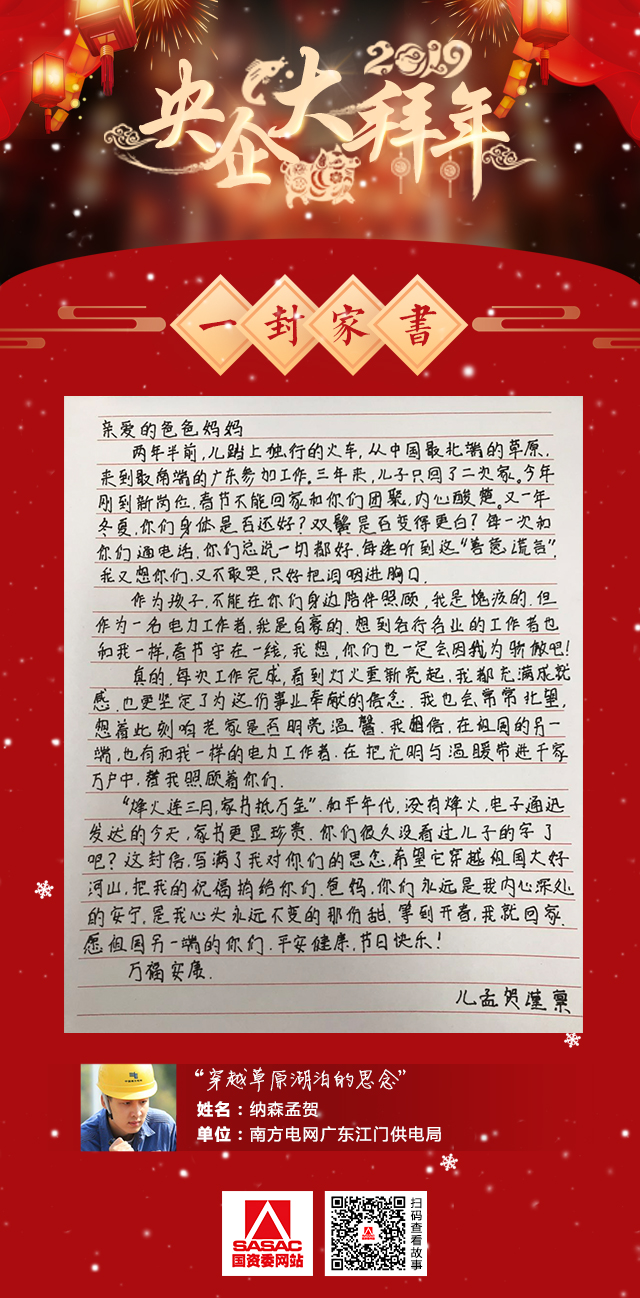 一份份真情,一封封家书,一段段故事,倾诉着央企建设者对亲人的思念之情。