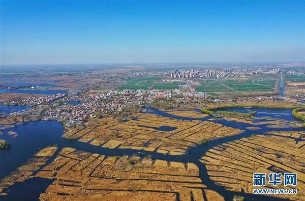 2019年3月31日,无人机拍摄的雄安新区白洋淀。