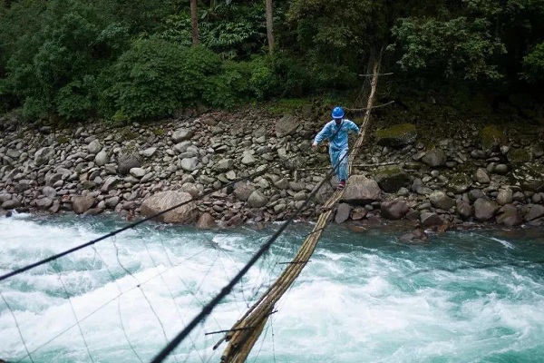 电网工人与山猴子比攀岩,跟蜘蛛学溜索放线,被独龙族人亲切称为“比山猴子还厉害”。