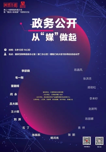 6月13日,由中国网络空间研究院指导、《网络传播》杂志主办的第二十期网络传播沙龙暨“国资小新现象”专家研讨会在北京市东城区朝阳门内大街190号举行,主题为“政务公开,从‘媒’做起”。政企媒学13位业界大咖和知名专家,聚焦“国资小新现象”,以“国资小新”等为研究对象,进行了深入研讨交流,总结政务新媒体运行发展规律,共同探讨政务新媒体如何进一步推动政务公开、提升政务服务能力,走好网上群众路线。