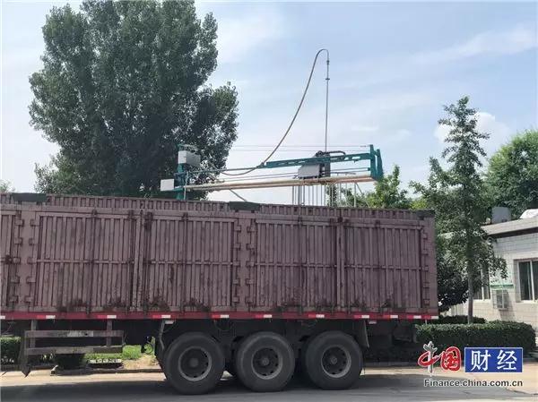 中储粮涿州直属库,一辆大型运粮车正在卸粮入库