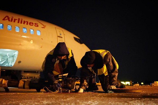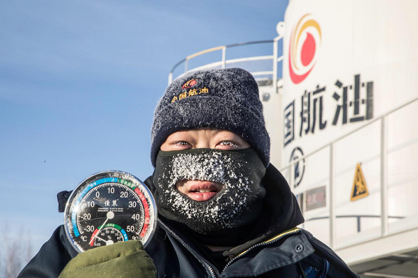 中国航油员工在-35℃的环境中工作