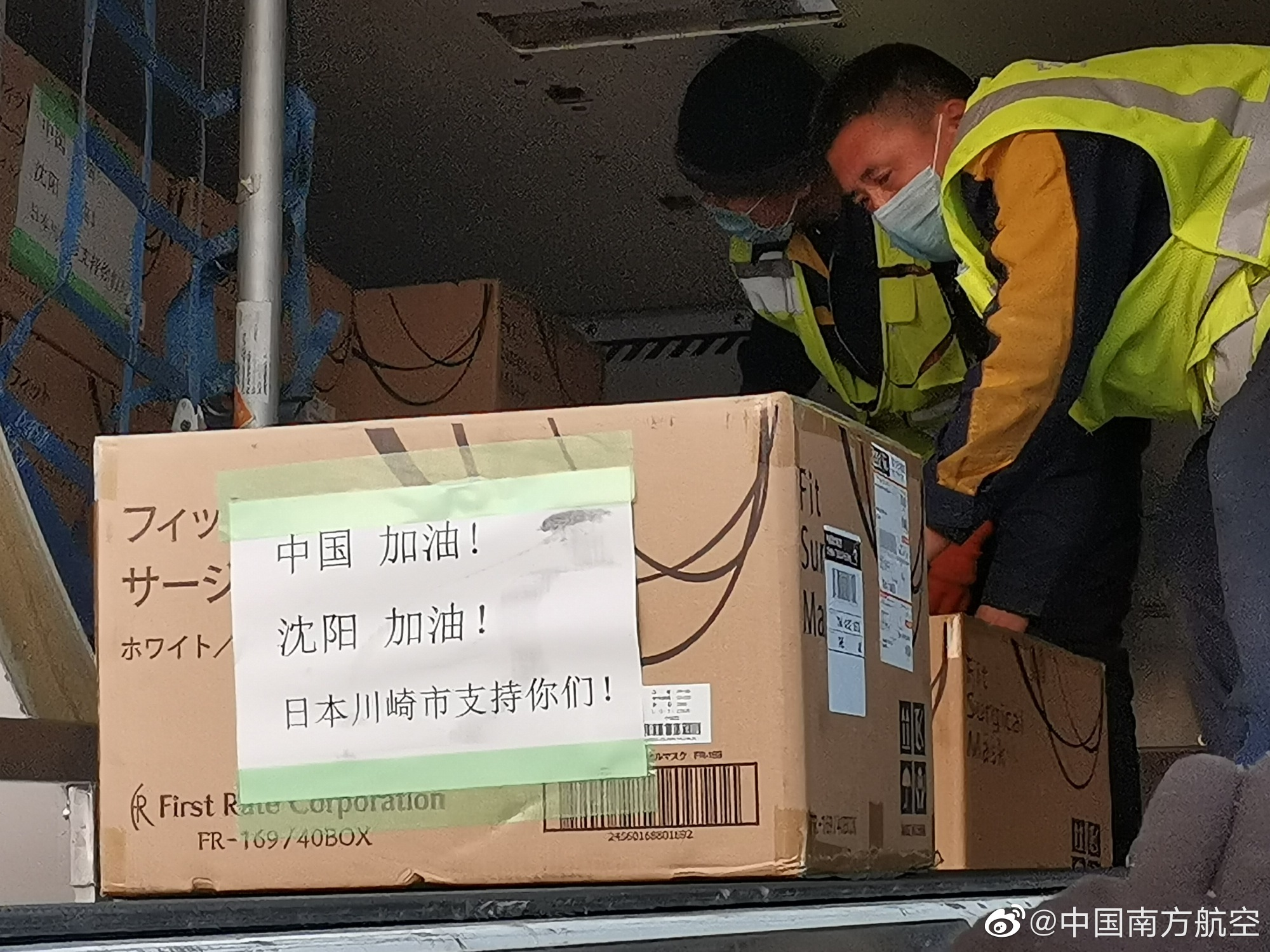 1月31日下午,南航CZ628东京-沈阳航班搭载日本川崎市捐赠的8万只医用口罩抵达沈阳。南航提供免费运输,并开辟绿色通道优先保障。