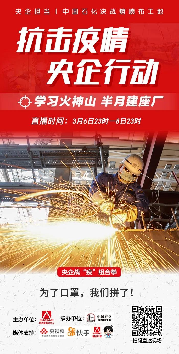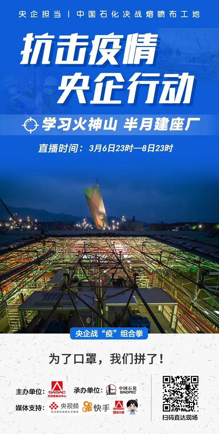 3月6日深夜23时,“为了口罩,我们拼了!”中石化燕山石化熔喷布生产线直播正式开播。这是继火神山、雷神山建设工程后,又一场邀请网友担任“云监工”的央企生产直播活动,由国资委新闻中心主办,中国石化承办。