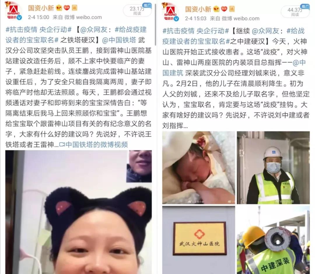 还记得2月4日,国资小新曾替前线两位新晋爸爸的新生宝宝张罗取名字吗?百万网友为给“火神山宝宝”与“雷神山宝宝”取名操碎了心。