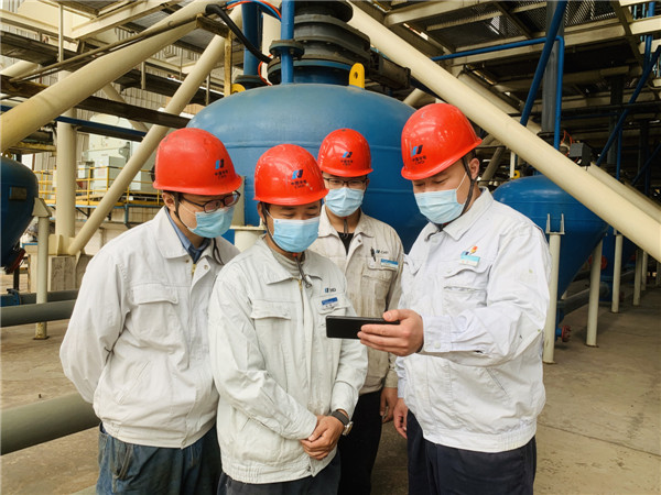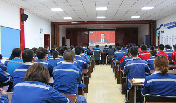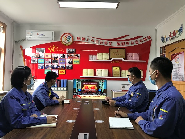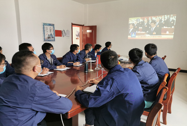 中国建材集团邯郸碲化镉项目部员工在项目现场观看十三届全国人大三次会议开幕会直播。