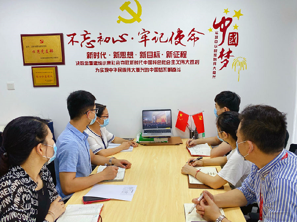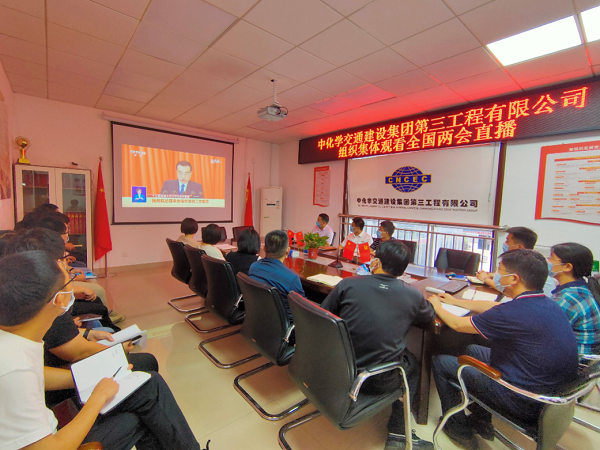 中核华辰建设有限公司职工收看十三届全国人大三次会议开幕会直播。