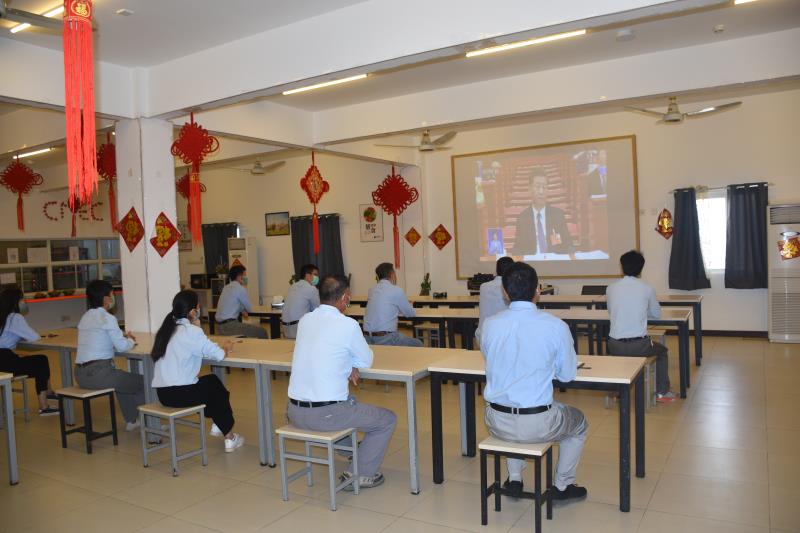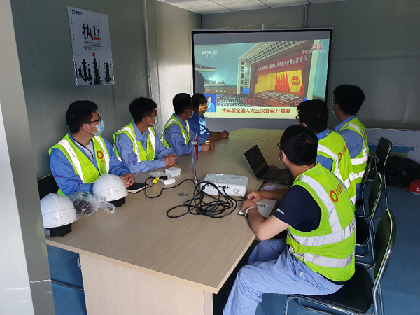 国机集团CMEC第五工程成套事业部巴基斯坦塔尔II区块露天煤矿项目部党员组织观看十三届全国人大三次会议开幕会直播。