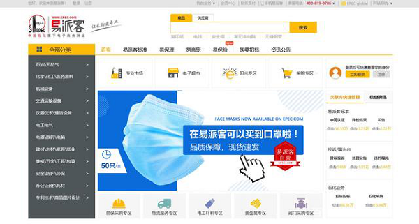 守望相助,共抗疫情。在疫情期间,易派客平台由原本主营的化工、材料、设备、电仪等专业工业品品类,迅速聚焦到防疫物资的生产及销售,充分发挥了平台的资源优势、理念优势及服务优势,实现了工作重心的快速转型。
