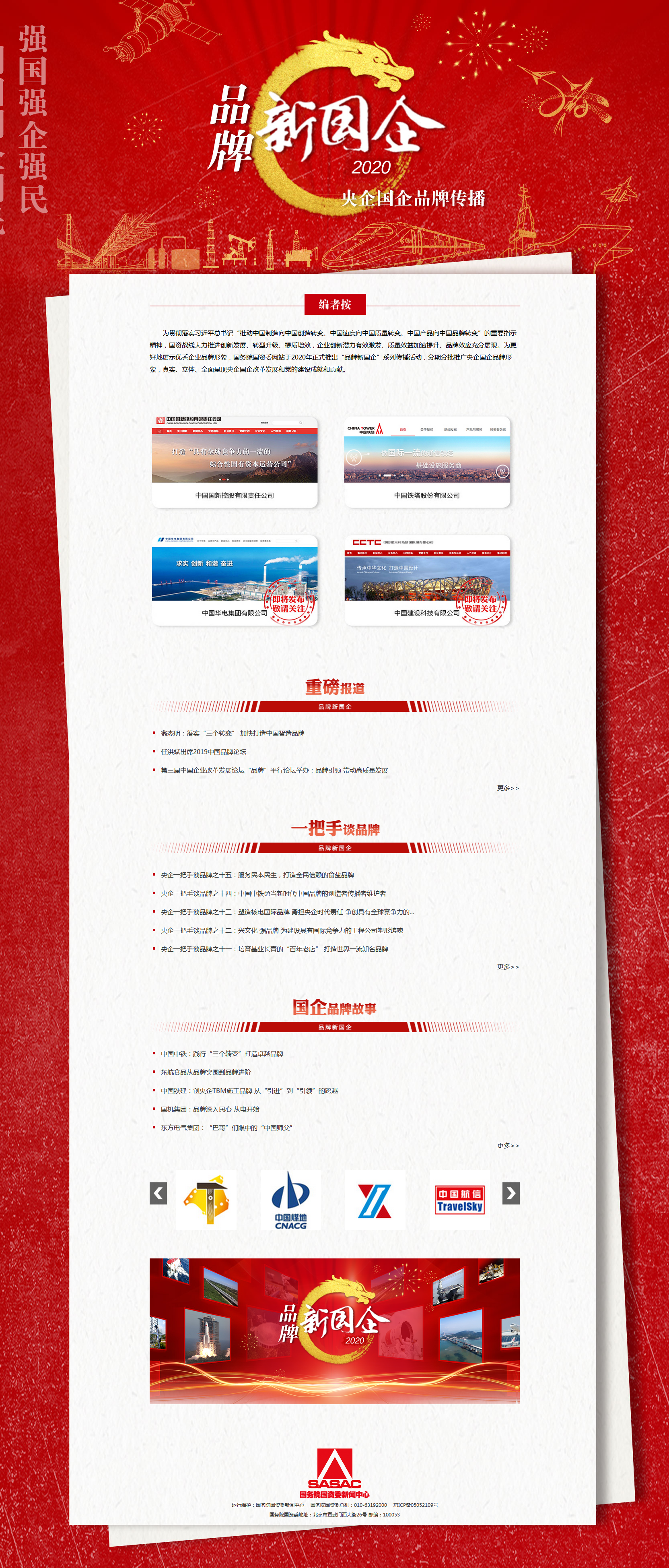 为贯彻落实习近平总书记“推动中国制造向中国创造转变、中国速度向中国质量转变、中国产品向中国品牌转变”的重要指示精神,国资战线大力推进创新发展、转型升级、提质增效,企业创新潜力有效激发、质量效益加速提升、品牌效应充分展现。为更好地展示优秀企业品牌形象,国务院国资委网站于2020年正式推出“品牌新国企”系列传播活动,分期分批推广央企国企品牌形象,真实、立体、全面呈现央企国企改革发展和党的建设成就和贡献。