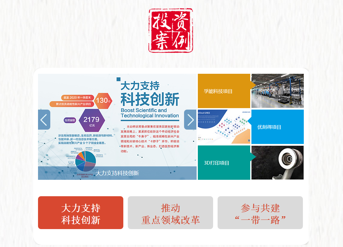 企业品牌展示板块,一企一策,内容丰富、形式多样,紧紧围绕企业品牌核心,全方位展示了企业的担当精神和大国顶梁柱形象,充分地彰显了新时代国有企业的新风貌。从内容选择、模块设置、布局规划方面进行了大胆的创新,从而更能满足企业个性化、多样化的需求。如中国国新的“投资案例”栏目重点报道了该企业在大力支持科技创新、推动重点领域改革、参与共建“一带一路”方面取得的实效。