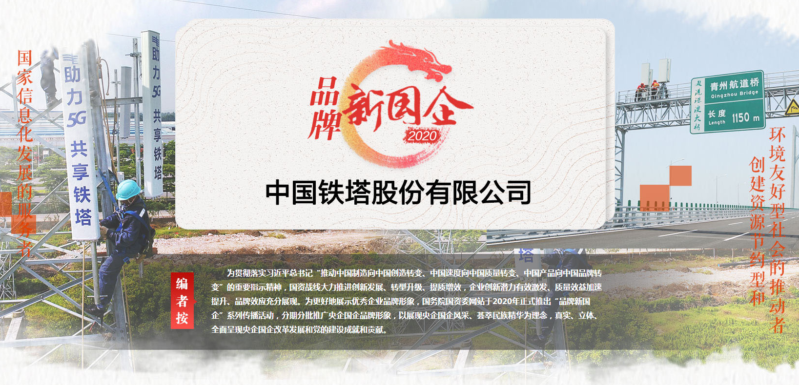 品牌兴则企业兴。近日,国资委新闻中心“品牌新国企”系列专题在国务院国资委网站正式上线。专题首期推出了中国国新控股有限责任公司、中国铁塔股份有限公司两家企业重要内容及品牌展示。
