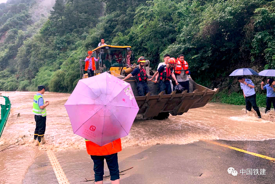 中国铁建要求所属各单位在积极做好自身防护的同时,充分发挥人员优势、设备优势、技术优势,全力支援各地抗洪抢险救援,保障道路畅通。