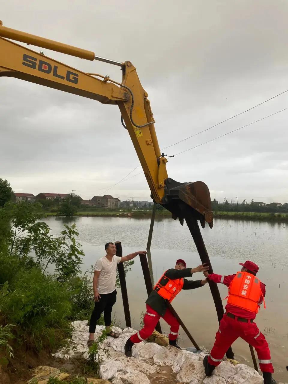 在安徽旌德,G205国道等交通要道中断,附近低洼处村落被淹。中铁二十一局集团芜黄高速公路项目部派出抢险人员,调集14台大型机械设备,对13处塌方道路和堵塞河流进行清理疏通,先后救出6名围困在洪水中的群众。