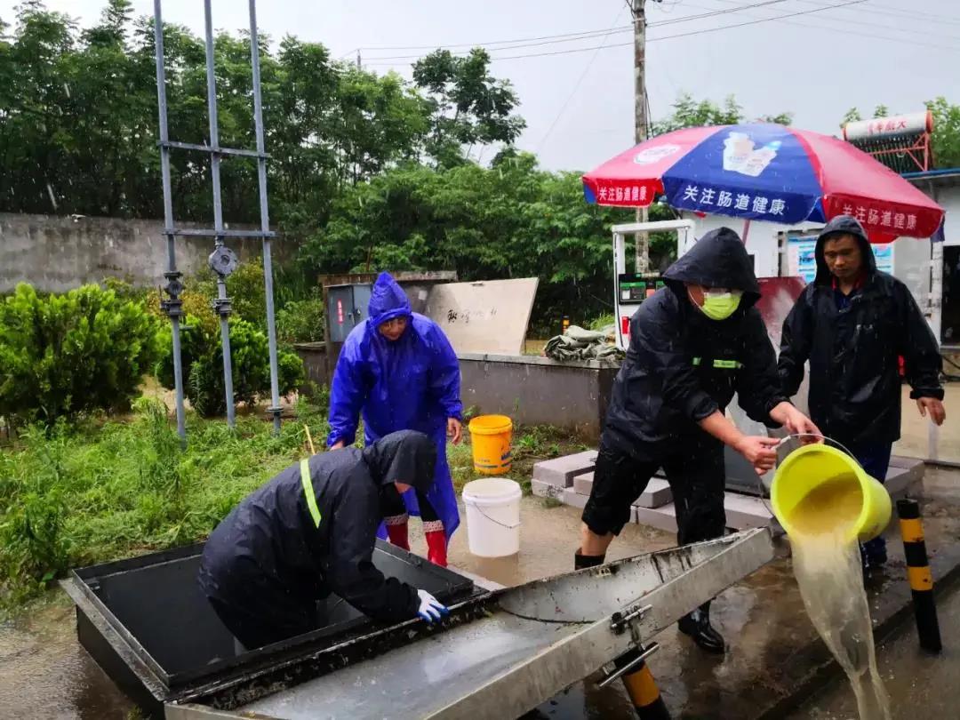 7月6日,武汉石油江夏分公司五里界加油站遭受洪水倒灌浸泡,党员突击队立即赶往现场帮扶,清理操作井积水