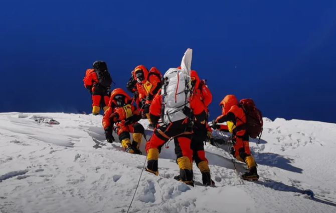5月27日,珠峰测量登山队在登山途中由中星6A通信卫星提供通信保障,中途实况画面通过卫星传回。风云四号等气象卫星提供气象监测支持。航天科技、航天科工、兵器工业集团、中国电科等中央企业,用北斗系统助登山队硬核测绘!